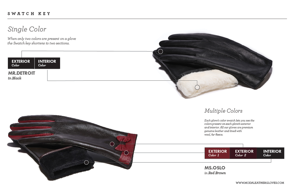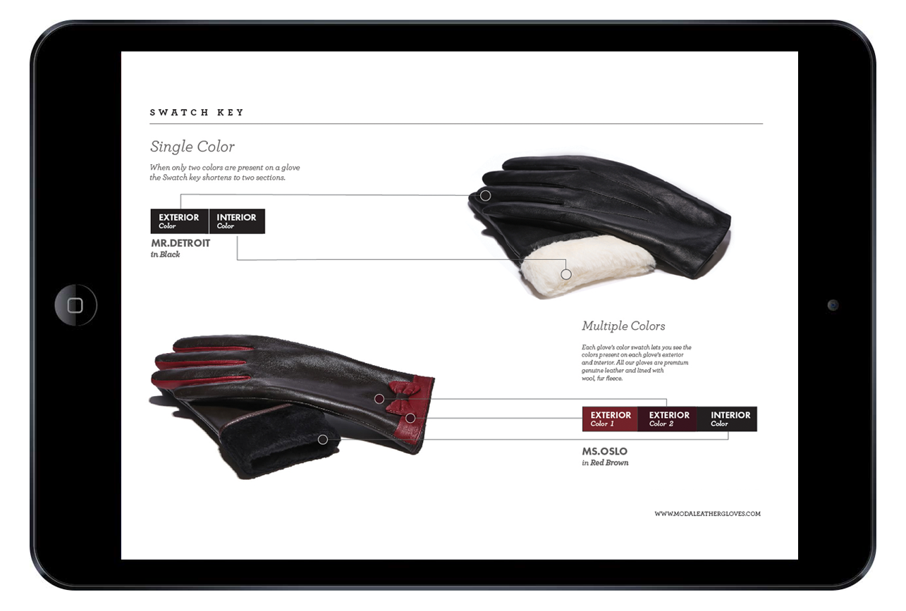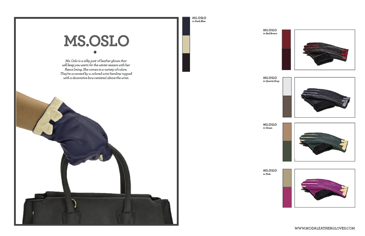 I created an interactive (digital) look book for MoDA leather gloves for product pitching purposes.